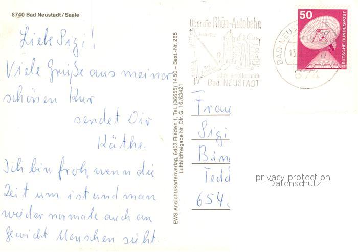 73228654 alte Postkarte Bad Neustadt Fliegeraufnahme Rhoen-Klinikum Franken-Sanatorium postalisch gelaufen Erhaltung siehe scans [NatalD47] KatCode: 11110009673114