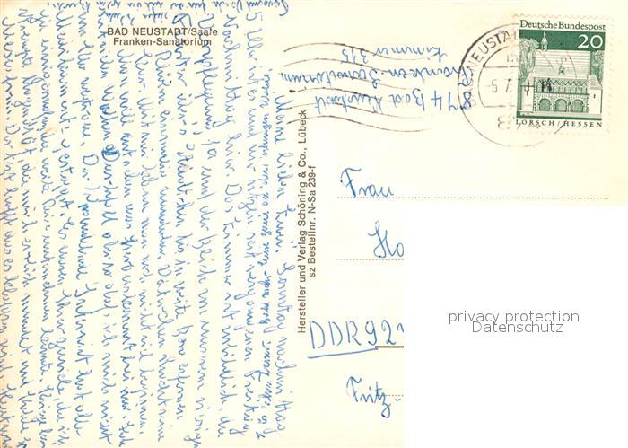 72974185 alte Postkarte Bad Neustadt Franken-Sanatorium postalisch gelaufen Erhaltung siehe scans [PaolaD17] KatCode: 11110009673114