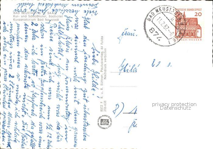 72590709 alte Postkarte Bad Neustadt Kur und Schlosshotel Badhotel Kursanatorium postalisch gelaufen Erhaltung siehe scans [WerneD78] KatCode: 11110009673114