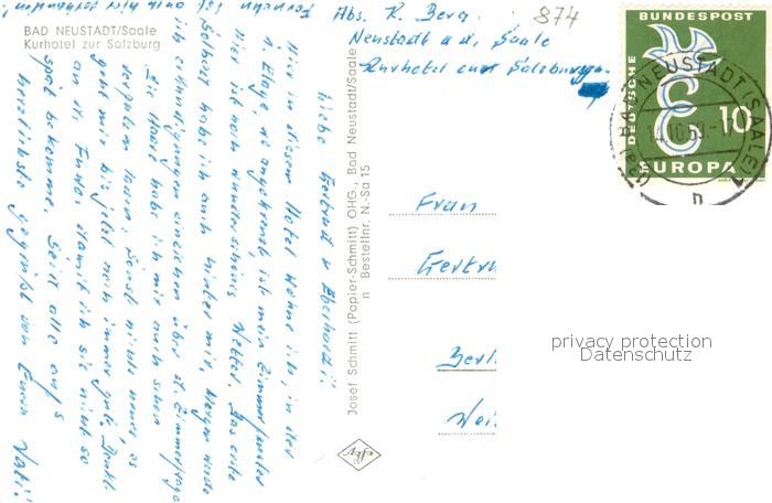 73648515 alte Postkarte Bad Neustadt Kurhotel zur Salzburg postalisch gelaufen Erhaltung siehe scans [FriedD77] KatCode: 11110009673114