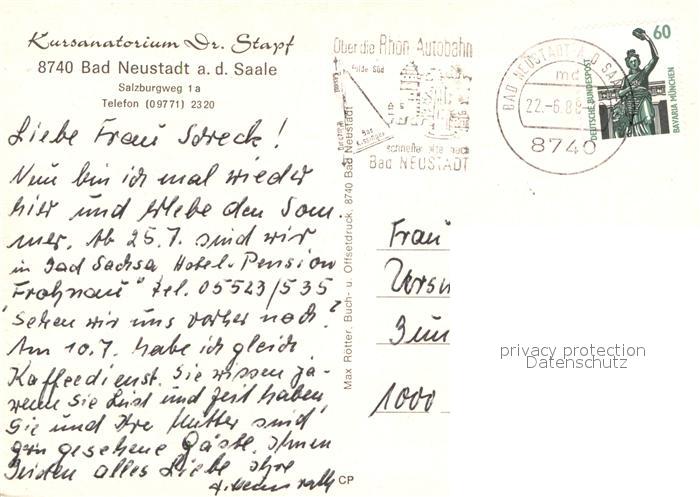 72974187 alte Postkarte Bad Neustadt Kursanatorium Dr. Stapf postalisch gelaufen Erhaltung siehe scans [PaolaD17] KatCode: 11110009673114