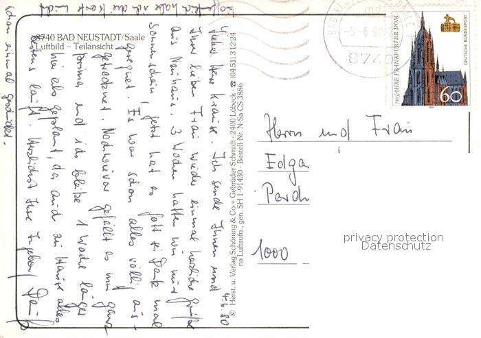 72678562 alte Postkarte Bad Neustadt Naturpark Bayerische Rhoen Fliegeraufnahme postalisch gelaufen Erhaltung siehe scans [FriedD77] KatCode: 11110009673114