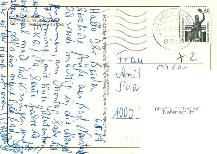 73173929 alte Postkarte Bad Neustadt Rhoen-Klinikum postalisch gelaufen Erhaltung siehe scans [NatalD47] KatCode: 11110009673114