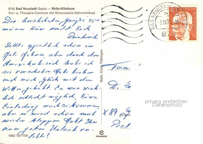 72816443 alte Postkarte Bad Neustadt Rhoen-Klinikum postalisch gelaufen Erhaltung siehe scans [NatalD47] KatCode: 11110009673114