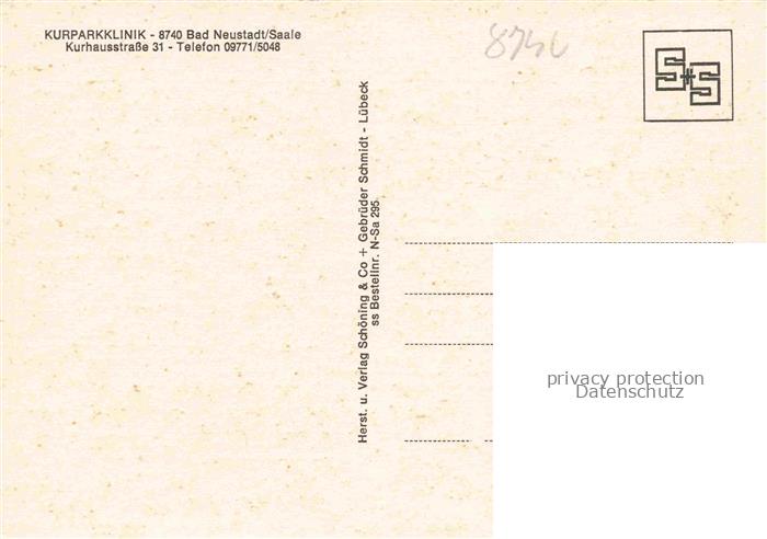 74055358 Bad Neustadt Saale Bayern Kurparkklinik Schwanenteich postalisch nicht gelaufen Erhaltung siehe scans [FriedD77] KatCode: 11110009673114