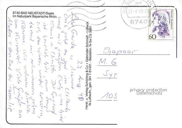 74110782 alte Postkarte Bad Neustadt Saale Bayern Naturpark Bayrische Rhoen Luftbild postalisch gelaufen Erhaltung siehe scans [IrynaD87] KatCode: 11110009673114