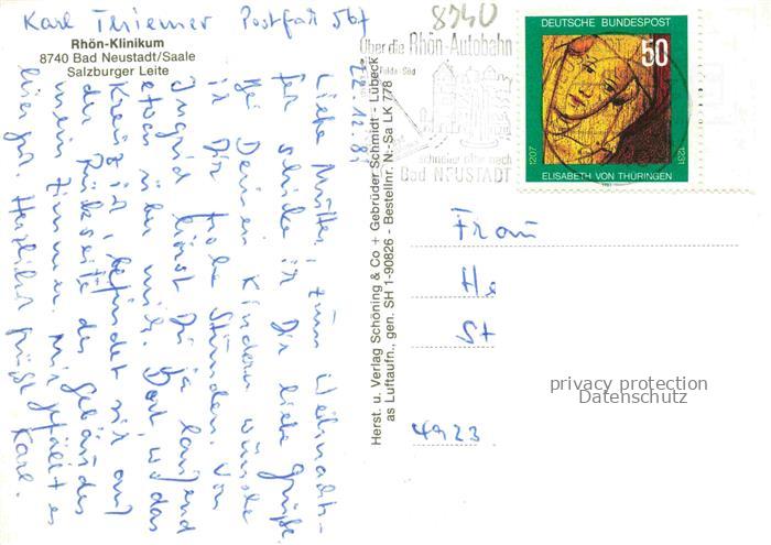 74055365 alte Postkarte Bad Neustadt Saale Bayern Rhoen-Klinikum Salzburger Leite postalisch gelaufen Fliegeraufnahme Erhaltung siehe scans [FriedD77] KatCode: 11110009673114