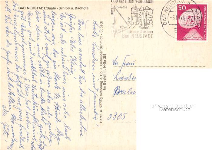 73081255 alte Postkarte Bad Neustadt Schloss und Badhotel postalisch gelaufen Erhaltung siehe scans [FriedD77] KatCode: 11110009673114