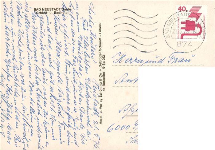 73924056 alte Postkarte Bad Neustadt Schloss und Badhotel postalisch gelaufen Erhaltung siehe scans [FriedD77] KatCode: 11110009673114