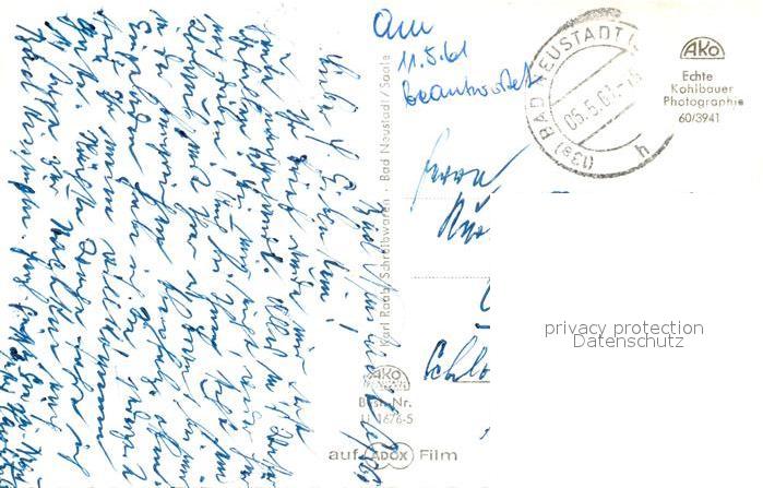 73044759 alte Postkarte Bad Neustadt Stadthalle Heilstaette Schlosshotel Klosterkirche postalisch gelaufen Erhaltung siehe scans [PaolaD17] KatCode: 11110009673114