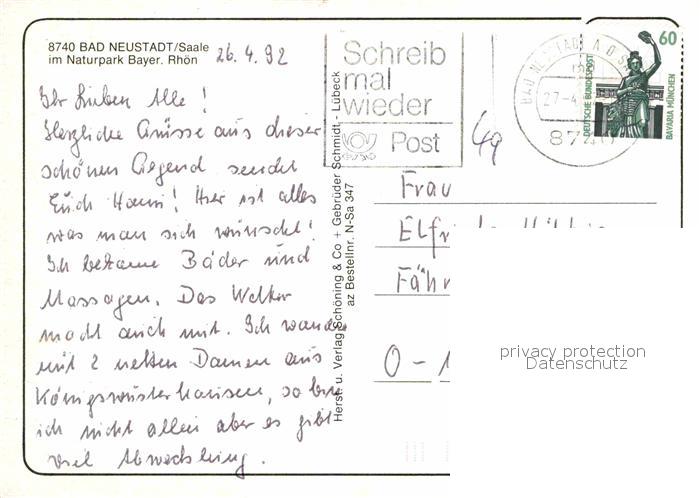 72664095 alte Postkarte Bad Neustadt Wandelhalle Kurkonzert Kurmittelhaus Sole Bewegungsbad postalisch gelaufen Erhaltung siehe scans [WerneD78] KatCode: 11110009673114
