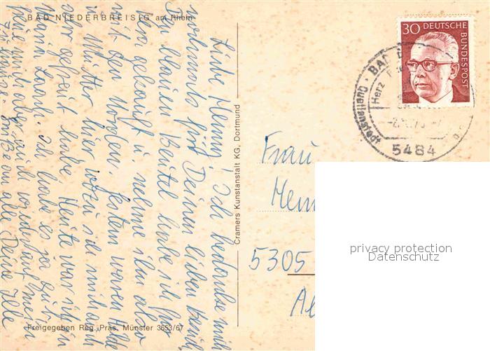 72837150 alte Postkarte Bad Niederbreisig am Rhein Fliegeraufnahme postalisch gelaufen Erhaltung siehe scans [FriedD77] KatCode: 11110007131006