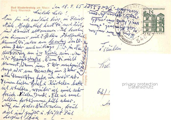 72792180 alte Postkarte Bad Niederbreisig Fliegeraufnahme Burg Rheineck postalisch gelaufen Erhaltung siehe scans [LiesaD40] KatCode: 11110007131006