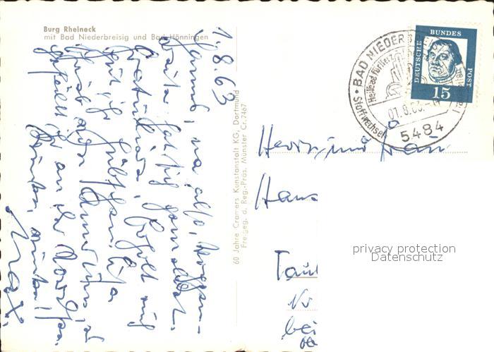 72539398 alte Postkarte Bad Niederbreisig Fliegeraufnahme Burg Rheineck postalisch gelaufen Erhaltung siehe scans [LiesaD40 kt120box] KatCode: 11110007131006
