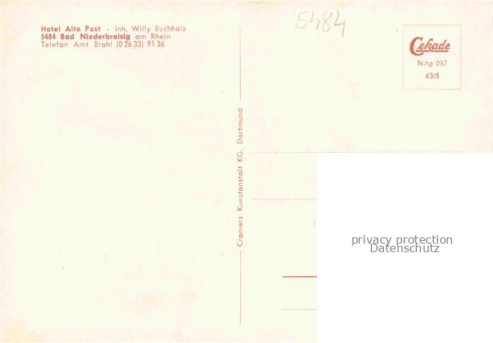 74053236 Bad Niederbreisig Hotel Alte Post Restaurant postalisch nicht gelaufen Erhaltung siehe scans [FriedD77] KatCode: 11110007131006