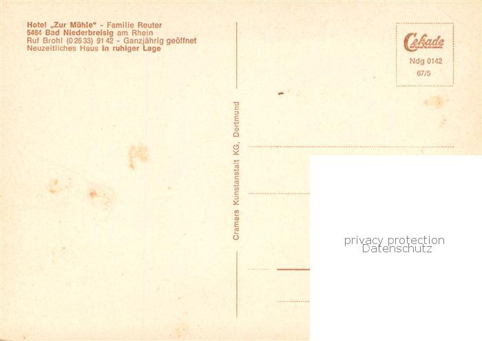 73784861 Bad Niederbreisig Hotel Zur Muehle postalisch nicht gelaufen Erhaltung siehe scans [WerneD78] KatCode: 11110007131006