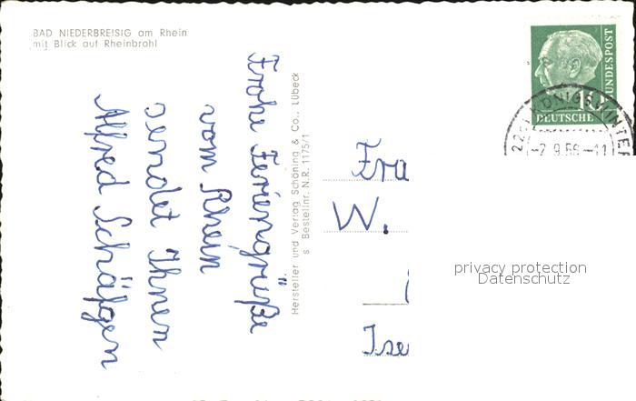 72402837 alte Postkarte Bad Niederbreisig Panorama Blick auf Rheinbrohl Weintrauben Weinanbaugebiet postalisch gelaufen Erhaltung siehe scans KatCode: 11110007131006