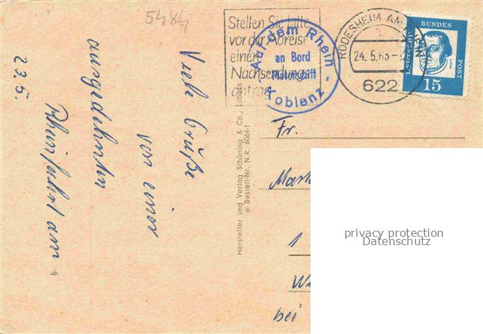 74054053 alte Postkarte Bad Niederbreisig Panorama Rhein Fahrgastschiff Burg Rheineck Kurhotel Freibad postalisch gelaufen Erhaltung siehe scans [FriedD77] KatCode: 11110007131006