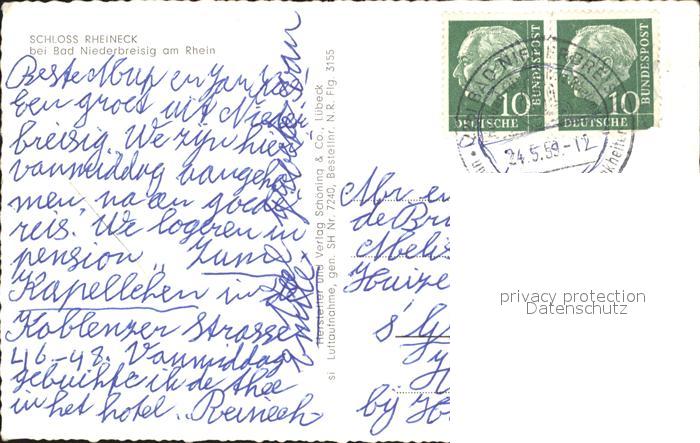 72081815 alte Postkarte Bad Niederbreisig Schloss Rheineck am Rhein Fliegeraufnahme postalisch gelaufen Erhaltung siehe scans KatCode: 11110007131006