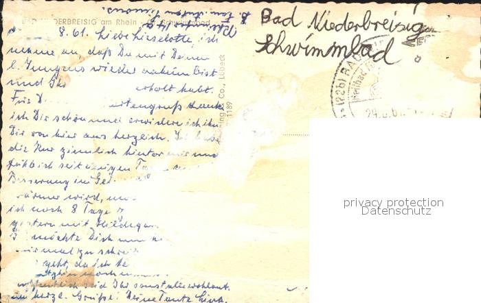 72193388 alte Postkarte Bad Niederbreisig Schwimmbad postalisch gelaufen Erhaltung siehe scans KatCode: 11110007131006