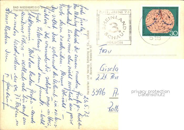 72302503 alte Postkarte Bad Niederbreisig Thermal-Hallenbad postalisch gelaufen Erhaltung siehe scans KatCode: 11110007131006