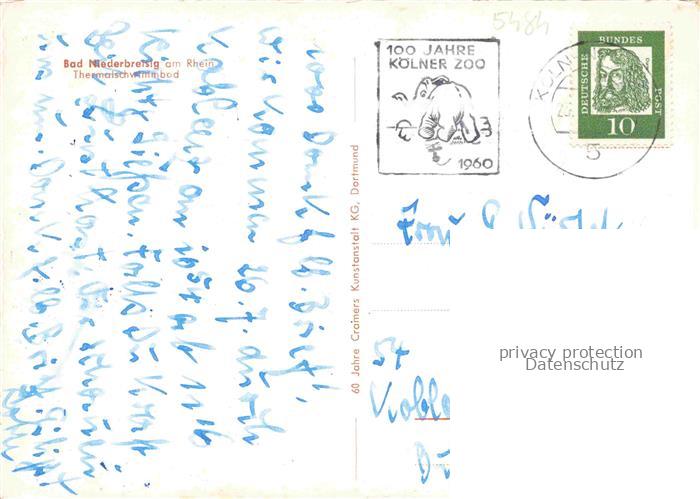 74052914 alte Postkarte Bad Niederbreisig Thermalschwimmbad Freibad postalisch gelaufen Erhaltung siehe scans [FriedD77] KatCode: 11110007131006