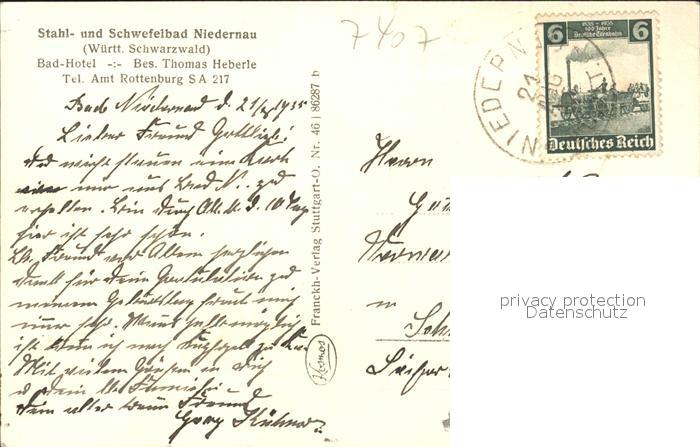 31885005 alte Postkarte Bad Niedernau Bad-Hotel Stahl- und Schwefelbad Niedernau postalisch gelaufen Erhaltung siehe scans KatCode: 11110008416036