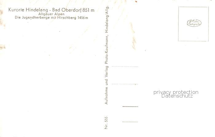 73803412 Bad Oberdorf Allgaeuer Alpen Jugendherberge mit Hirschberg postalisch nicht gelaufen Erhaltung siehe scans [WerneD78] KatCode: 11110009780123