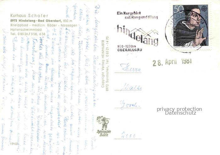 74153783 alte Postkarte Bad Oberdorf Bad Hindelang Bayern Kurhaus Schofer postalisch gelaufen Erhaltung siehe scans [FriedD77] KatCode: 11110009780123