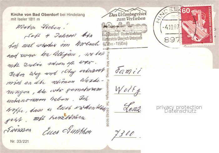 72739742 alte Postkarte Bad Oberdorf bei Hindelang mit Iseler postalisch gelaufen Erhaltung siehe scans [LiesaD40] KatCode: 11110009780123