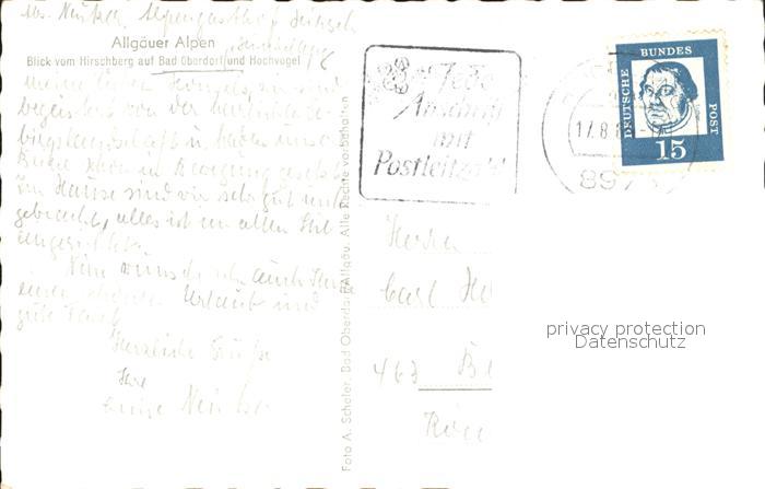 72209359 alte Postkarte Bad Oberdorf Blick vom Hirschberg mit Hochvogel postalisch gelaufen Erhaltung siehe scans KatCode: 11110009780123