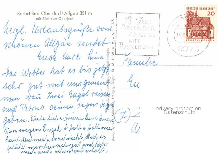 72761182 alte Postkarte Bad Oberdorf Fliegeraufnahme mit Oberjoch postalisch gelaufen Erhaltung siehe scans [LiesaD40] KatCode: 11110009780123
