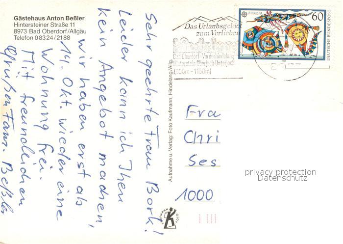 73652536 alte Postkarte Bad Oberdorf Gaestehaus Anton Bessler postalisch gelaufen Erhaltung siehe scans [WerneD78] KatCode: 11110009780123