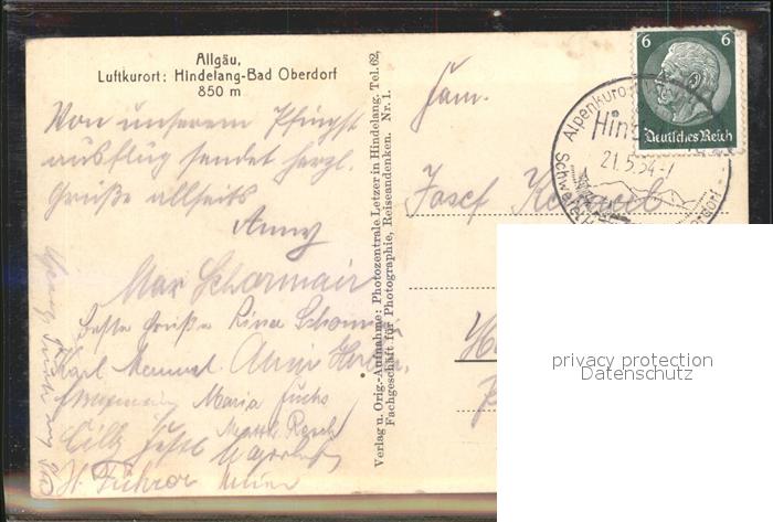 71848512 alte Postkarte Bad Oberdorf Hindelang Allgaeu postalisch gelaufen Erhaltung siehe scans KatCode: 11110009780123