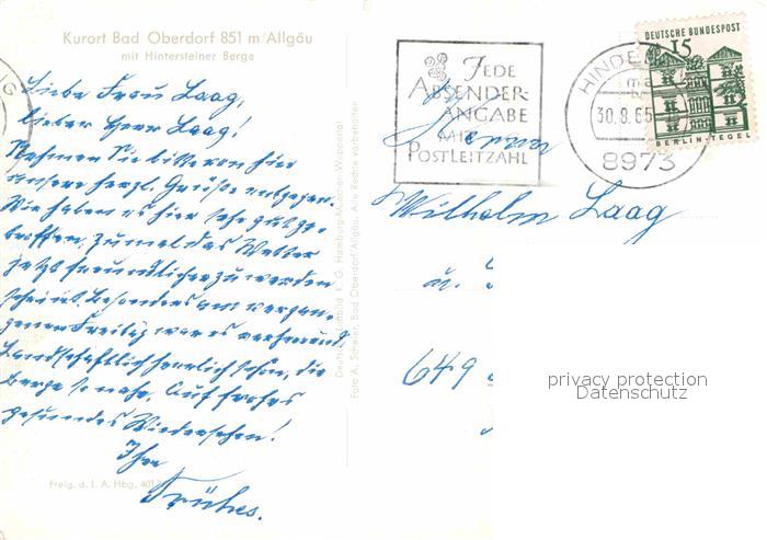 72774611 alte Postkarte Bad Oberdorf Hintersteiner Berge postalisch gelaufen Erhaltung siehe scans [NatalD47] KatCode: 11110009780123
