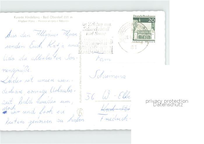 72362183 alte Postkarte Bad Oberdorf Hornwiesen postalisch gelaufen Erhaltung siehe scans KatCode: 11110009780123