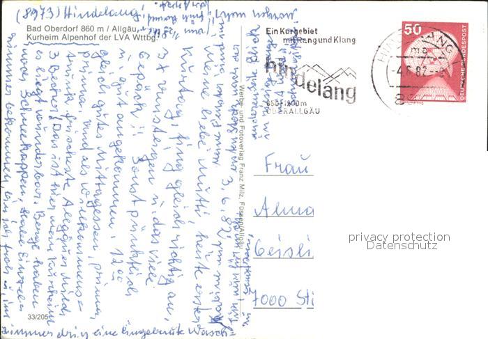 72572760 alte Postkarte Bad Oberdorf Kurheim Alpenhof postalisch gelaufen Erhaltung siehe scans [AndreD76] KatCode: 11110009780123