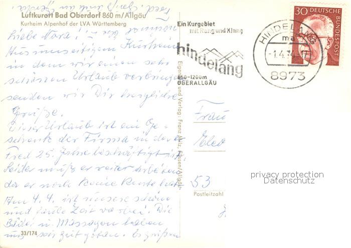 73653047 alte Postkarte Bad Oberdorf Kurheim Alpenhof der LVA Wuerttemberg postalisch gelaufen Erhaltung siehe scans [WerneD78] KatCode: 11110009780123