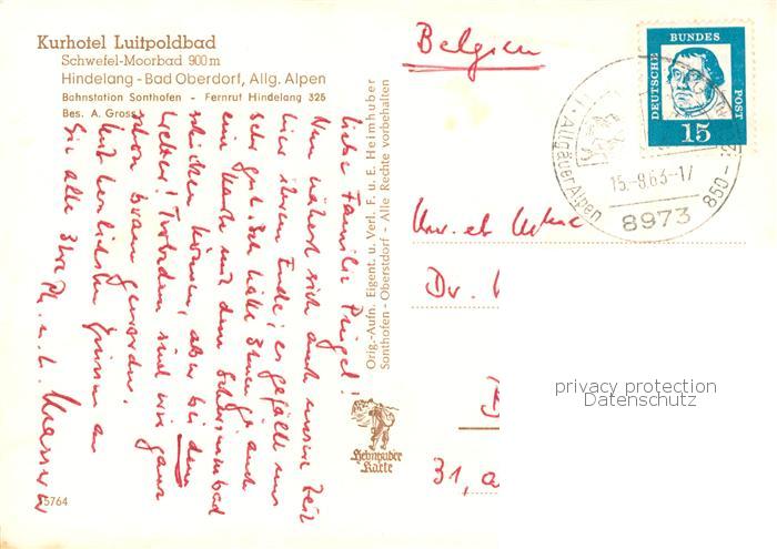 73803700 alte Postkarte Bad Oberdorf Kurhotel Luitpold Fischerstube postalisch gelaufen Erhaltung siehe scans [WerneD78] KatCode: 11110009780123