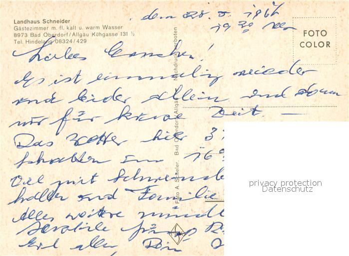 73615283 Bad Oberdorf Landhaus Schneider postalisch nicht gelaufen Erhaltung siehe scans [WerneD78] KatCode: 11110009780123
