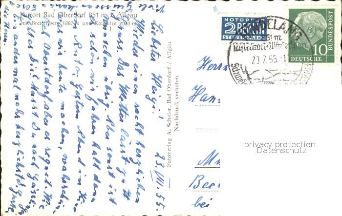 72444910 alte Postkarte Bad Oberdorf mit Breitenberg und Rotspitze postalisch gelaufen Erhaltung siehe scans KatCode: 11110009780123
