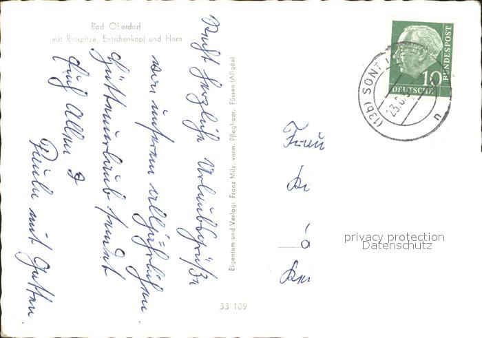 72216365 alte Postkarte Bad Oberdorf mit Rotspitze Entschenkopf und Horn postalisch gelaufen Erhaltung siehe scans KatCode: 11110009780123