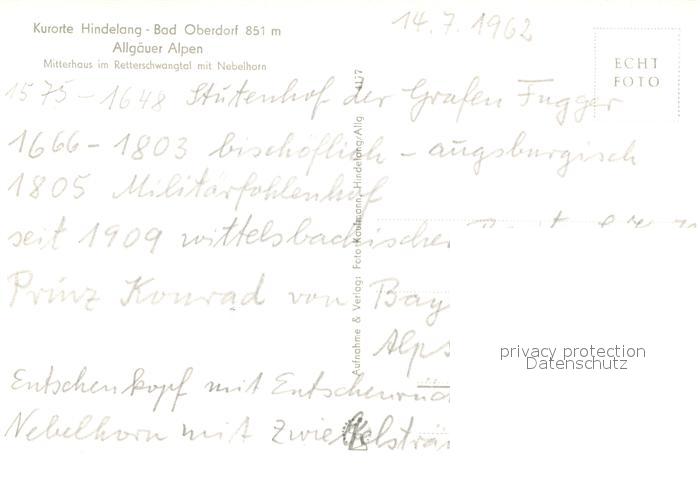 72952698 Bad Oberdorf Mitterhaus im Retterschwangtal mit Nebelhorn Allgaeuer Alpen postalisch nicht gelaufen Erhaltung siehe scans [FriedD77] KatCode: 11110009780123