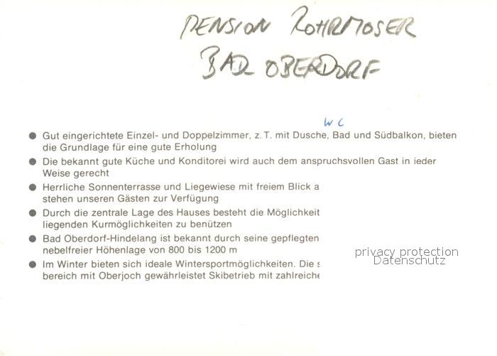 73311991 Bad Oberdorf Pension Rohrmoser postalisch nicht gelaufen Keine Postkarte (siehe scan) Erhaltung siehe scans [NatalD47] KatCode: 11110009780123