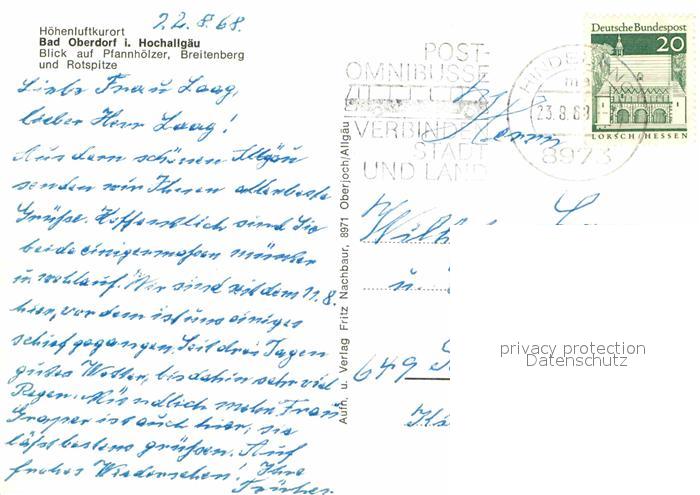 72775030 alte Postkarte Bad Oberdorf Pfannhoelzer Breitenberg Rotspitze postalisch gelaufen Erhaltung siehe scans [NatalD47] KatCode: 11110009780123
