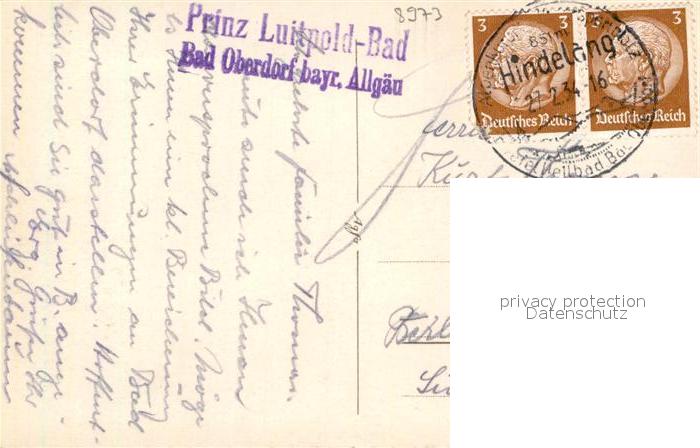 42963104 alte Postkarte Bad Oberdorf Prinz Luitpold Bad postalisch gelaufen Erhaltung siehe scans [AndreD76] KatCode: 11110009780123