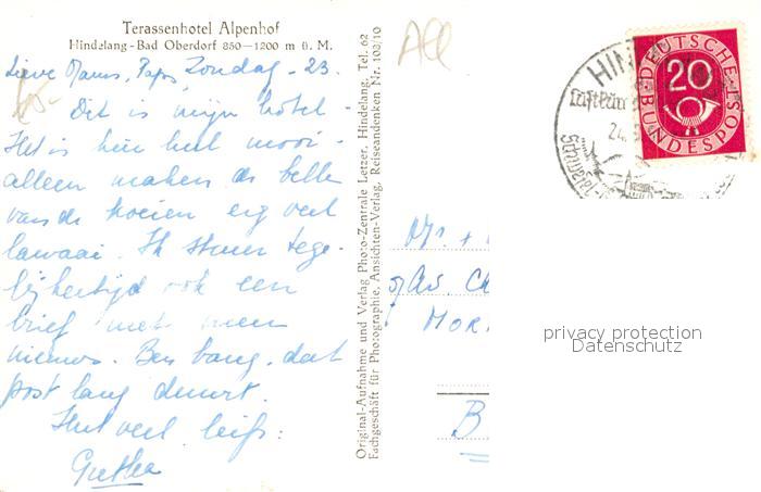 73566940 alte Postkarte Bad Oberdorf Terrassenhotel Alpenhof postalisch gelaufen Erhaltung siehe scans [LiesaD40] KatCode: 11110009780123