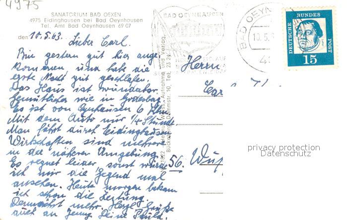73703988 alte Postkarte Bad Oexen Eidinghausen Sanatorium Aussenansicht postalisch gelaufen Erhaltung siehe scans [LiesaD40] KatCode: 11110005770004