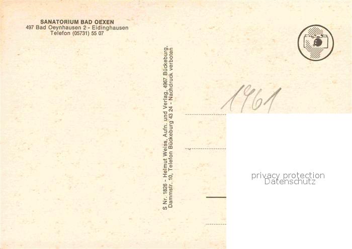 72908000 Bad Oexen Eidinghausen Sanatorium Kurpark postalisch nicht gelaufen Erhaltung siehe scans [FriedD77] KatCode: 11110005770004