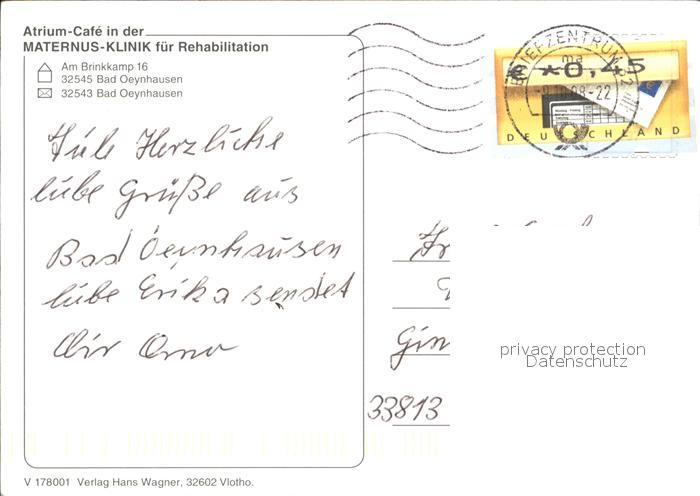 72562436 alte Postkarte Bad Oeynhausen Atrium Cafe Maternus Klinik Porta Westfalica postalisch gelaufen Erhaltung siehe scans [AntonD74] KatCode: 11110005770004